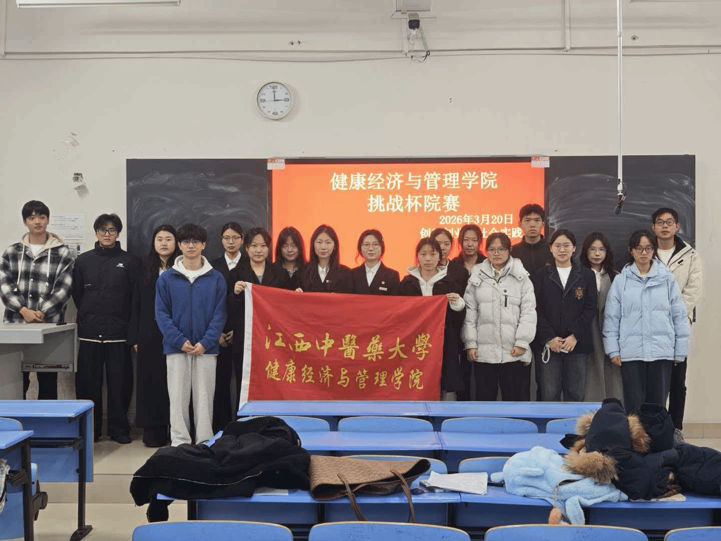 江中新闻网讯(通讯员 姜雅欣)为引导青年学子深耕专业、勇于创新,进一步激发广大青年学生的创新精神、创业意识和创造能力,3月20日,健康经济与管理学院在北区A103教室举办第十五届“挑战杯”大学生创业计划竞赛。本次竞赛旨在以创新引领创业、以创业带动实践,为青年学子搭建了展示创意、交流学习、锤炼本领的优质平台,营造了浓厚的校园创新创业氛围。